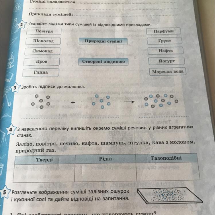 2. Природні суміші - повітря, нафта, морська вода, глина, кров, грунт.
