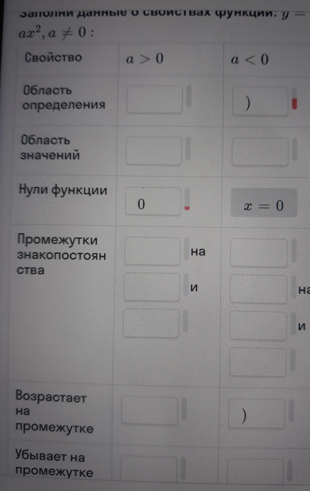 Промежутки знакопостоянства : y < 0 на (- ∞ ; 0) и на (0 ; + ∞)
