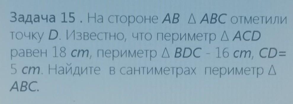 P(ABC)=P(ACD)+P(BDC)-2CD=18+16-10=24 см