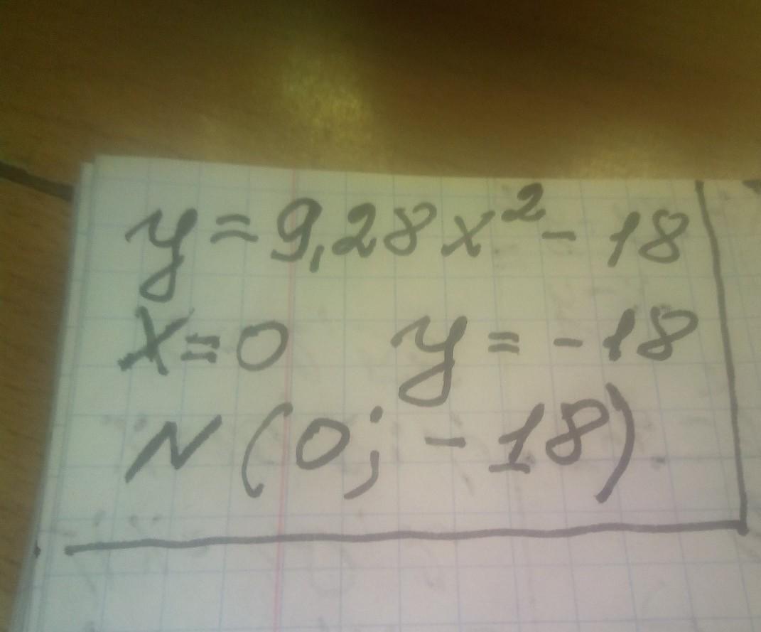 График квадратичной функции y=9,28x2−18 пересекает ось y в точке N.
