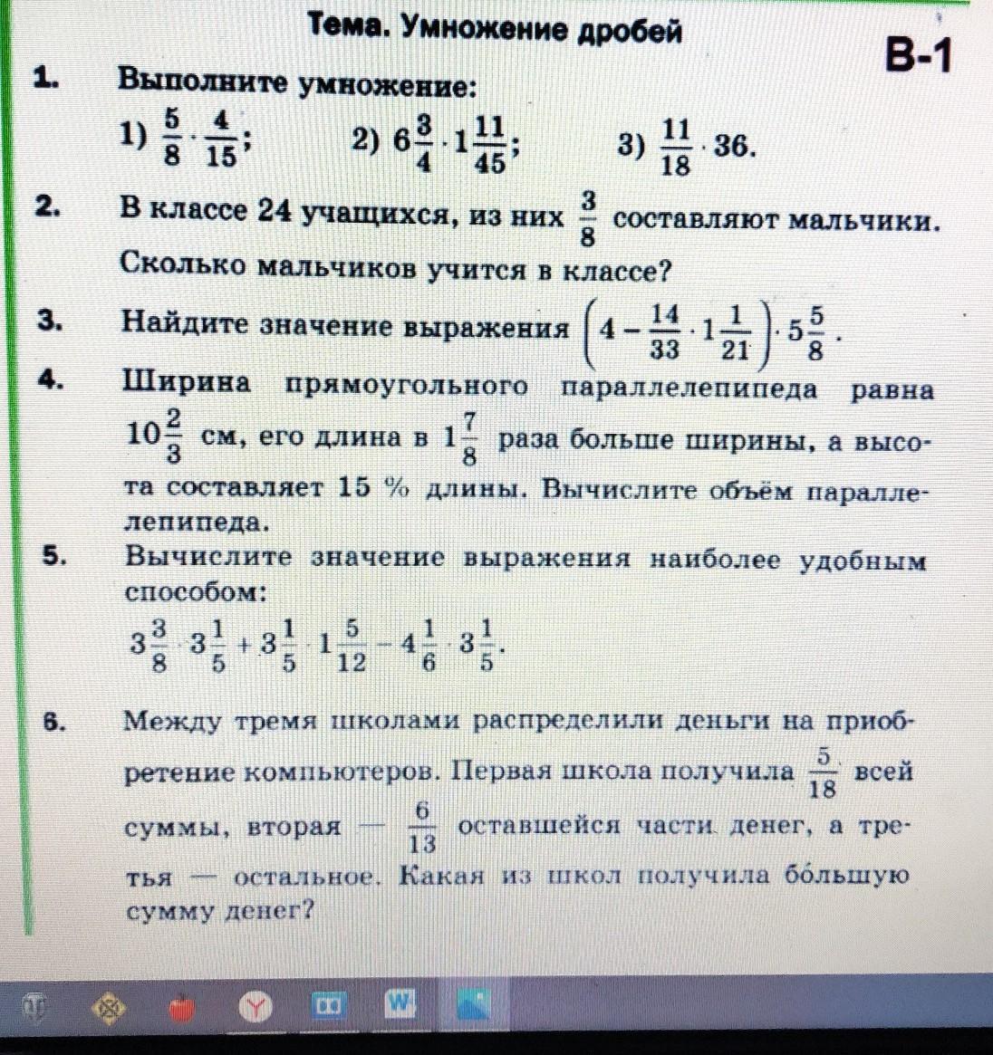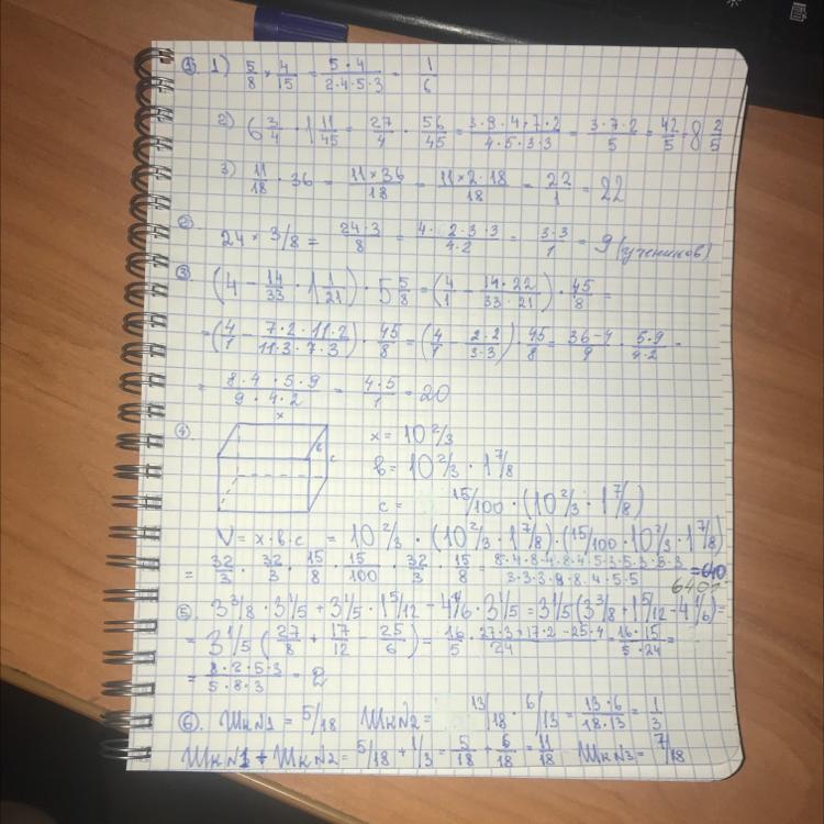 5. 3 1/5 *(3 3/8 + 1 5/12 - 4 1/6) = 3 1/5 *(27/8 + 17/12 - 25/6) = 3 1/5 * 15/24 = 16/5 * 3/6 = 1