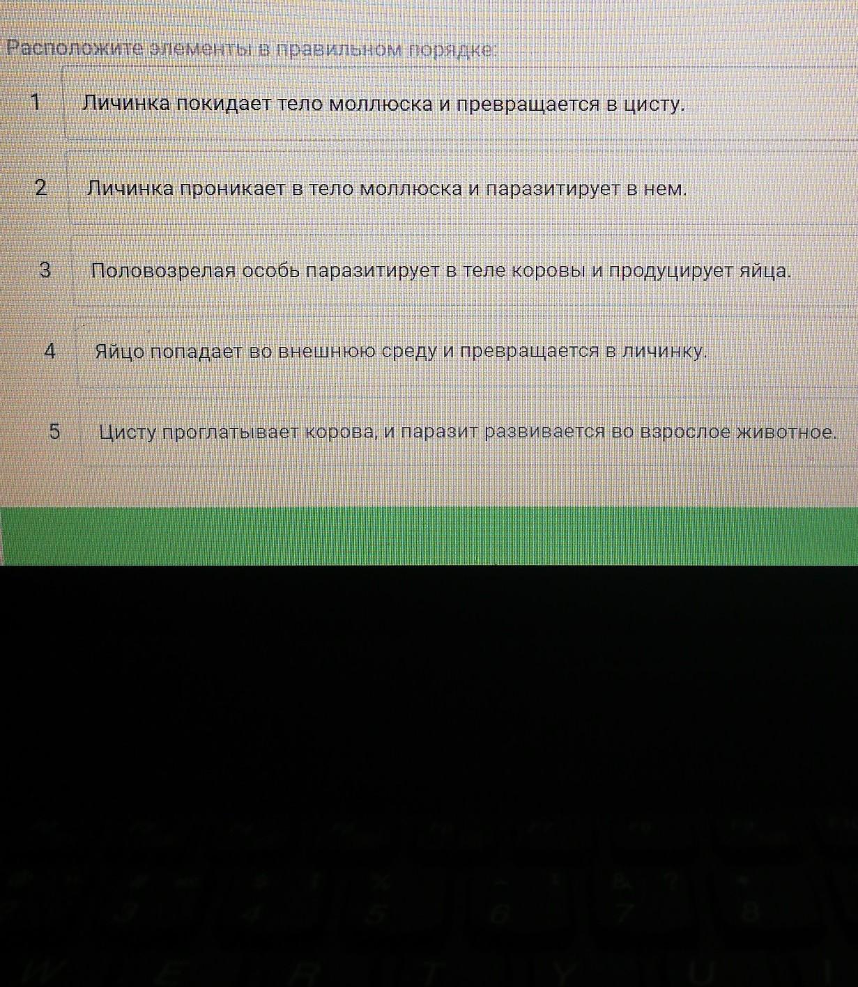 Установите последовательность этапов жизненного цикла печеночного сосальщик, начиная с яйца