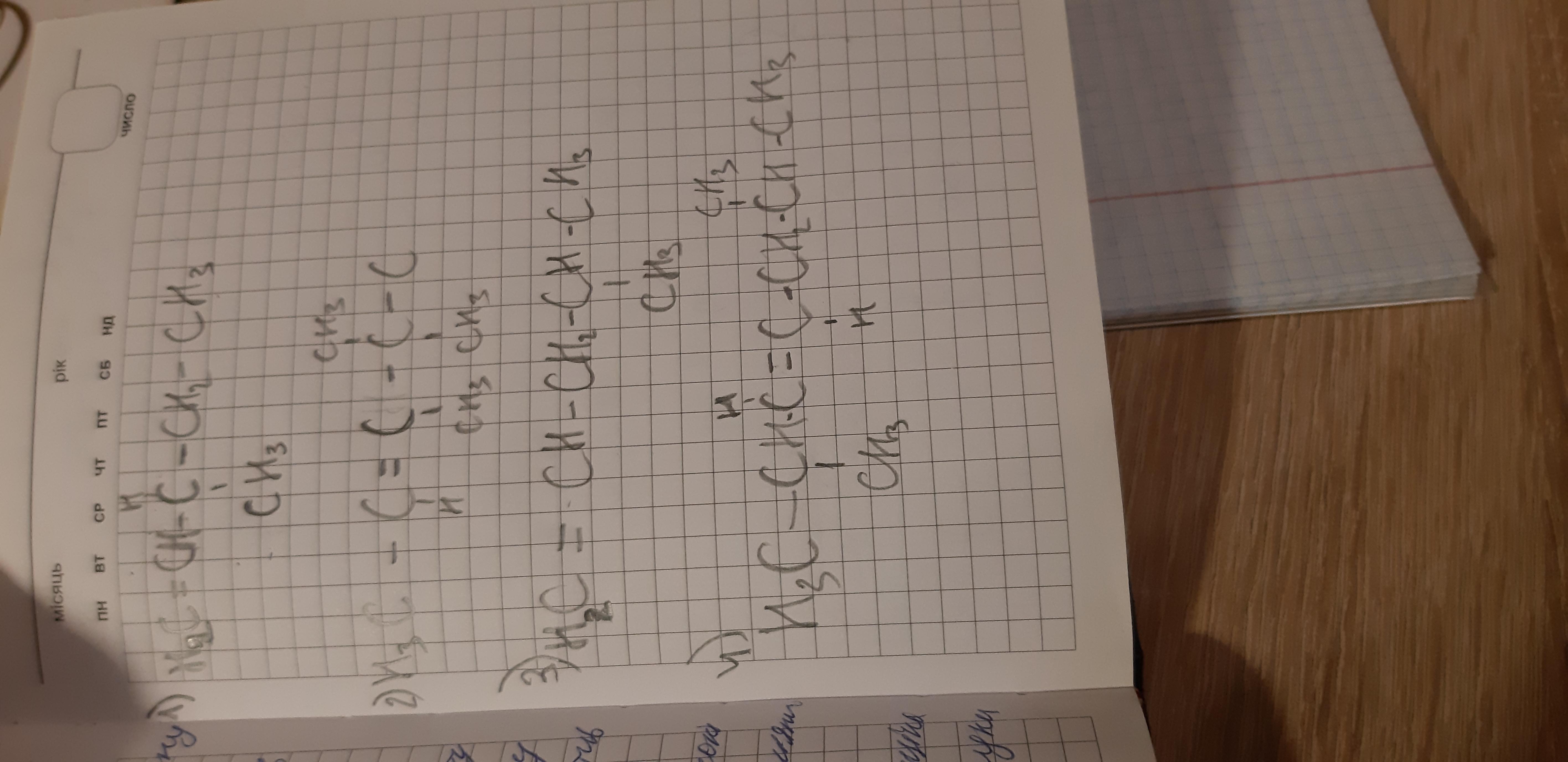 1) 3-метилпентен-1; 2) 3,4,4 триметилпентен-2;