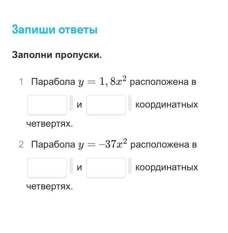 1) Парабола y = 1,8x² расположена в 1 и 2 координатных четвертях .
