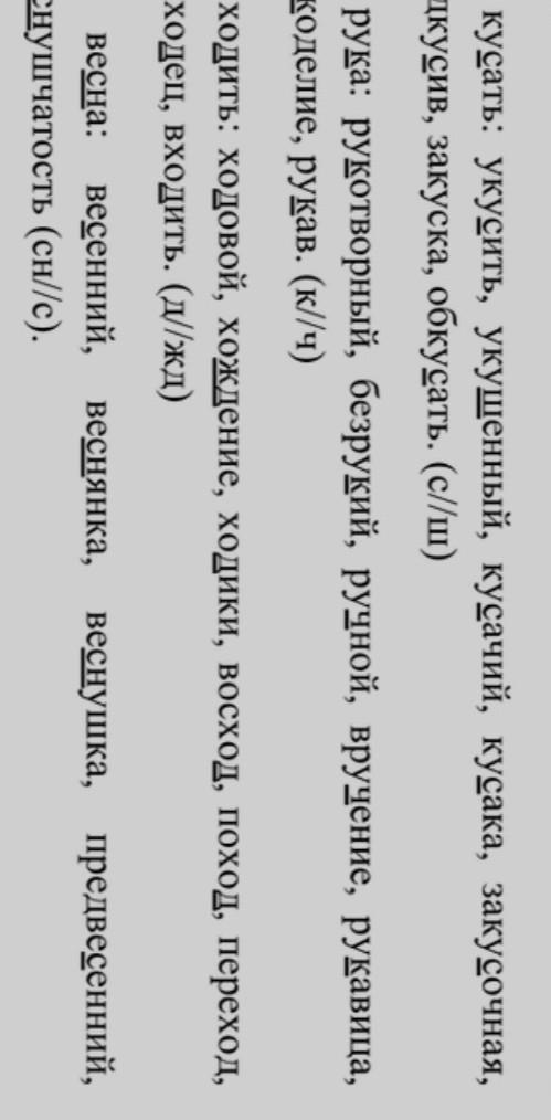 слов. Подчеркните звуки, которые чередуются в корневых морфемах.