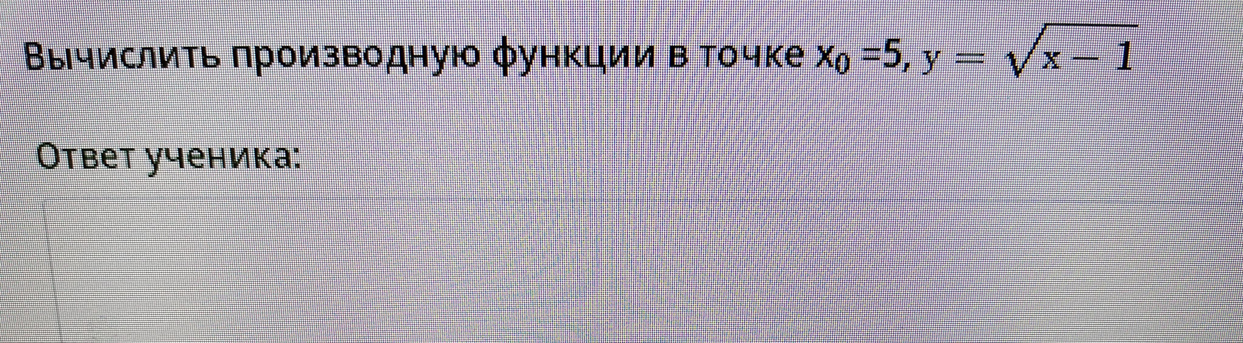 y=\sqrt{x-1}\ \ ,\ \ x_0=5\\\\\\y'=\dfrac{1}{2\sqrt{x-1}}\ \ ,\ \ \ y'(5)=\dfrac{1}{2\sqrt{5-1}}=\dfrac{1}{2\cdot \sqrt4}=\dfrac{1}{2\cdot 2}=\dfrac{1}{4}