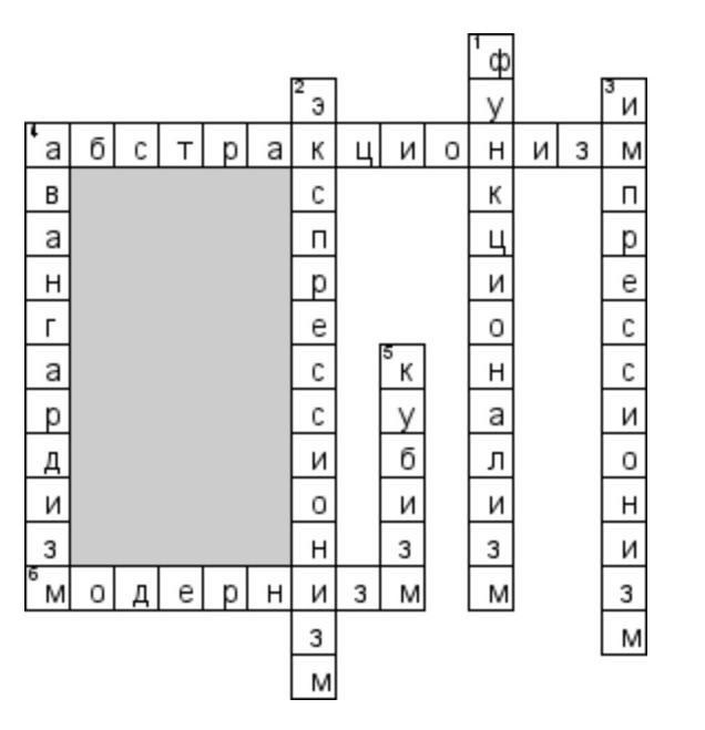 6. Направление в искусстве XX века, характеризующееся стремлением утвердить новые нетрадиционные начала в искусстве.