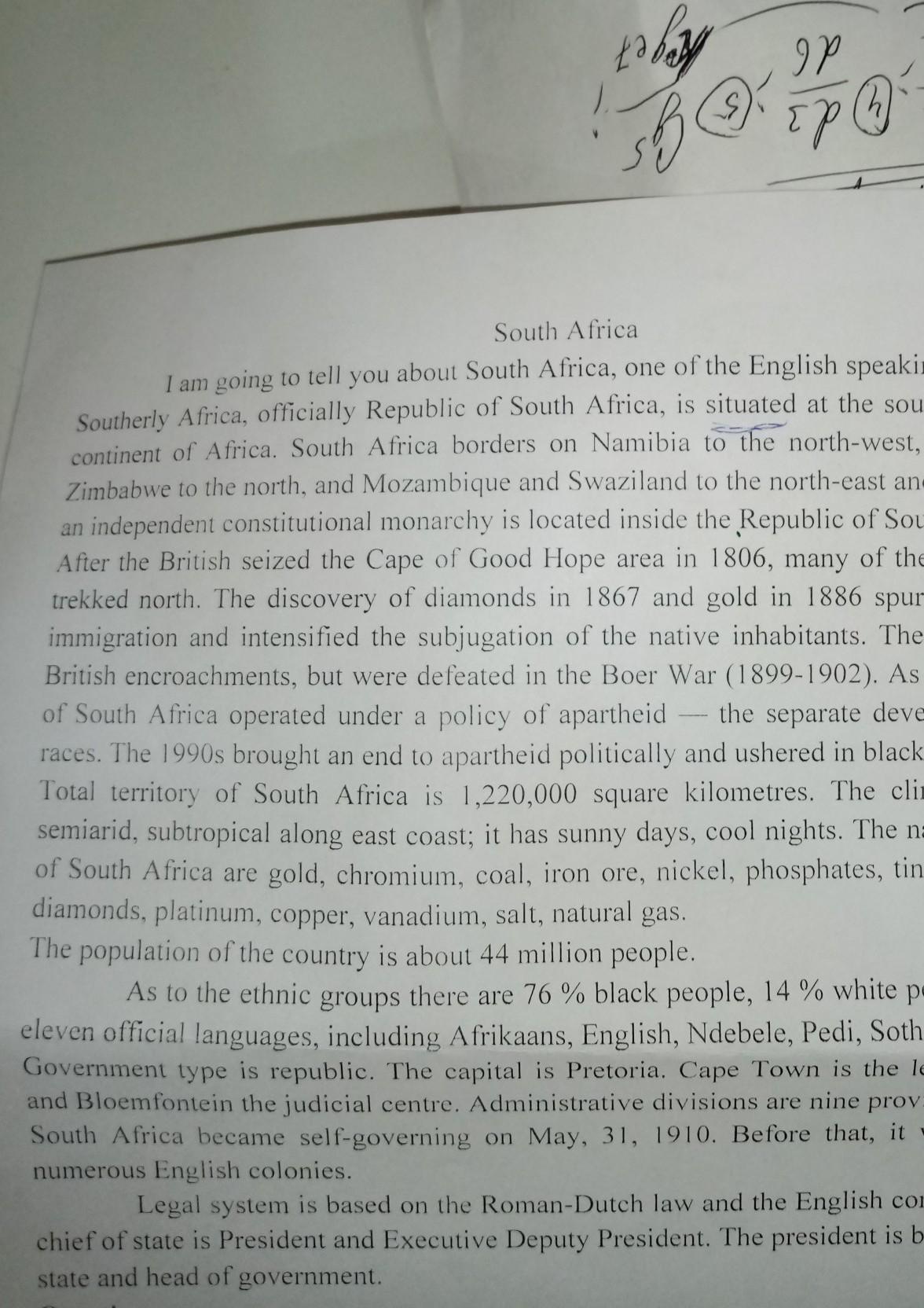 7) The natural resources of South Africa are gold, chromium, coal, iron ore, nickel, phosphates, tin, uranium, gem diamonds, platinum, copper, vanadium, salt, natural gas