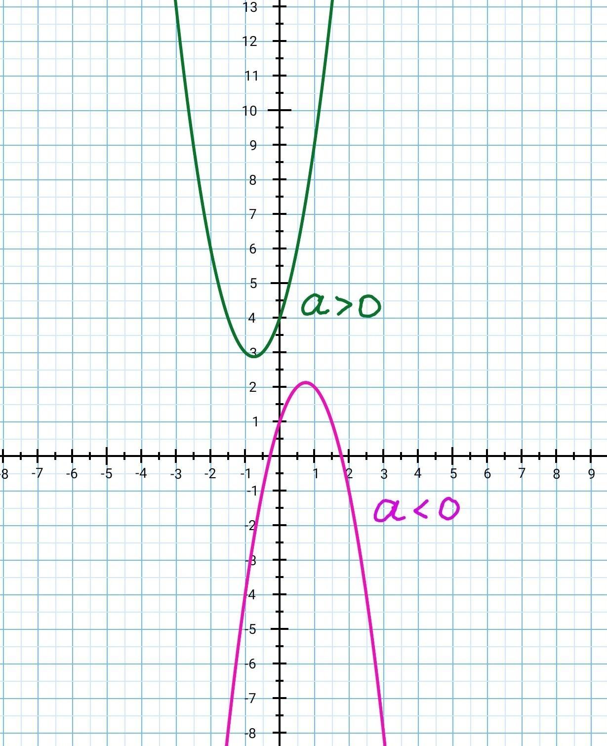 Графіком квадратичної функції є парабола, вітки якої напрямлені вгору, якщо а>0, і вниз, якщо а<0.