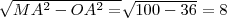 OA=6теперь находим расстояние от вершины (пусть будет обозначен как М) до точки О