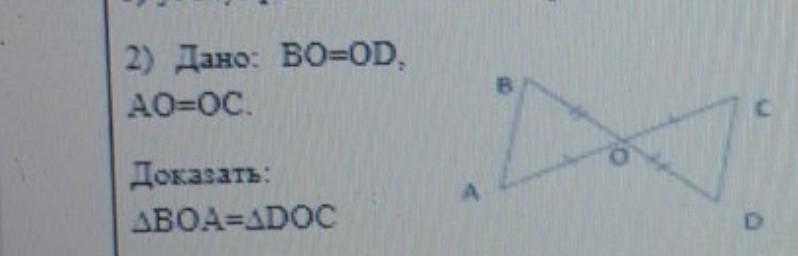 Следовательно BOA = DOC (по первому признаку равенства треугольников)