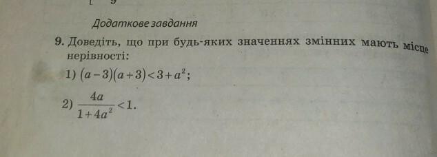 При будь-яких значеннях а, чисельник і знаменник завжди додатнє число. Отже Нерівність доведена