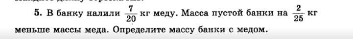 7/20+27/100=35/100+27/100=62/100- масса банки с мёдом