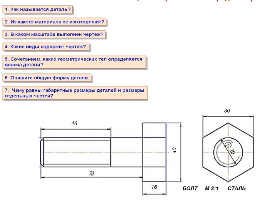 6) Болт состоит из стержня в виде цилиндра с наружной резьбой длиной 2/3 длины стержня, длина которого в 3,5 раза больше его диаметра, и головки болта в виде правильной шестиугольной призмы, высота которой меньше диаметра стержня, а диаметр описанной окружности около основания призмы в два раза больше диаметра стержня.