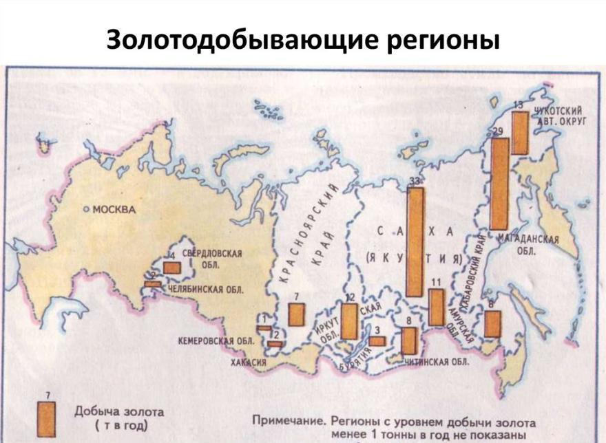Какие регионы России являются золотодобывающими?