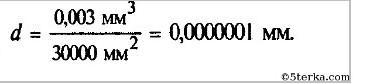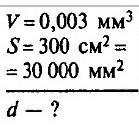 Капля масла объемом 0,003 мм3 растеклась по поверхности воды, получился слой толщиной в одну молекулу, и заняла площадь 300 см2. Определите средний диаметр молекулы масла.
