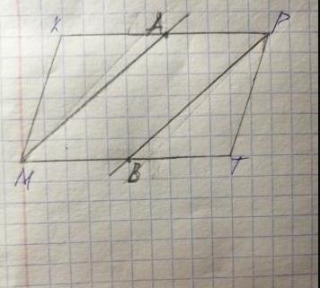 Биссектрисы углов M и P параллелограмма MKPT пересекают стороны KP и MT соответственно в точках A и B.