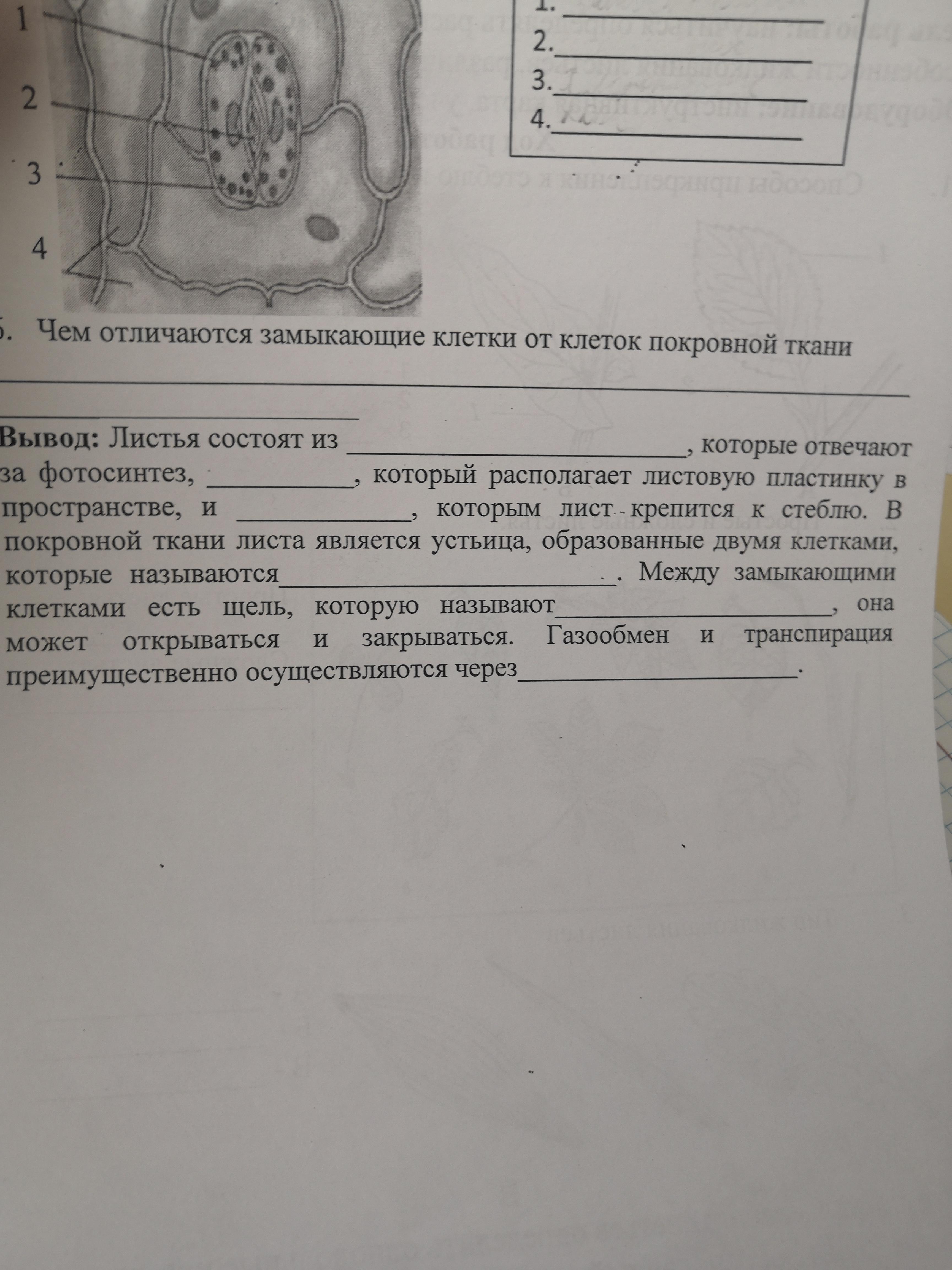 Листья состоят из листовых пластинок, которые отвечают за фотосинтез, черешка, который располагает листовую пластинку в пространстве, и основания, которым лист крепится к стеблю. замыкающими. апература наверное. устьица