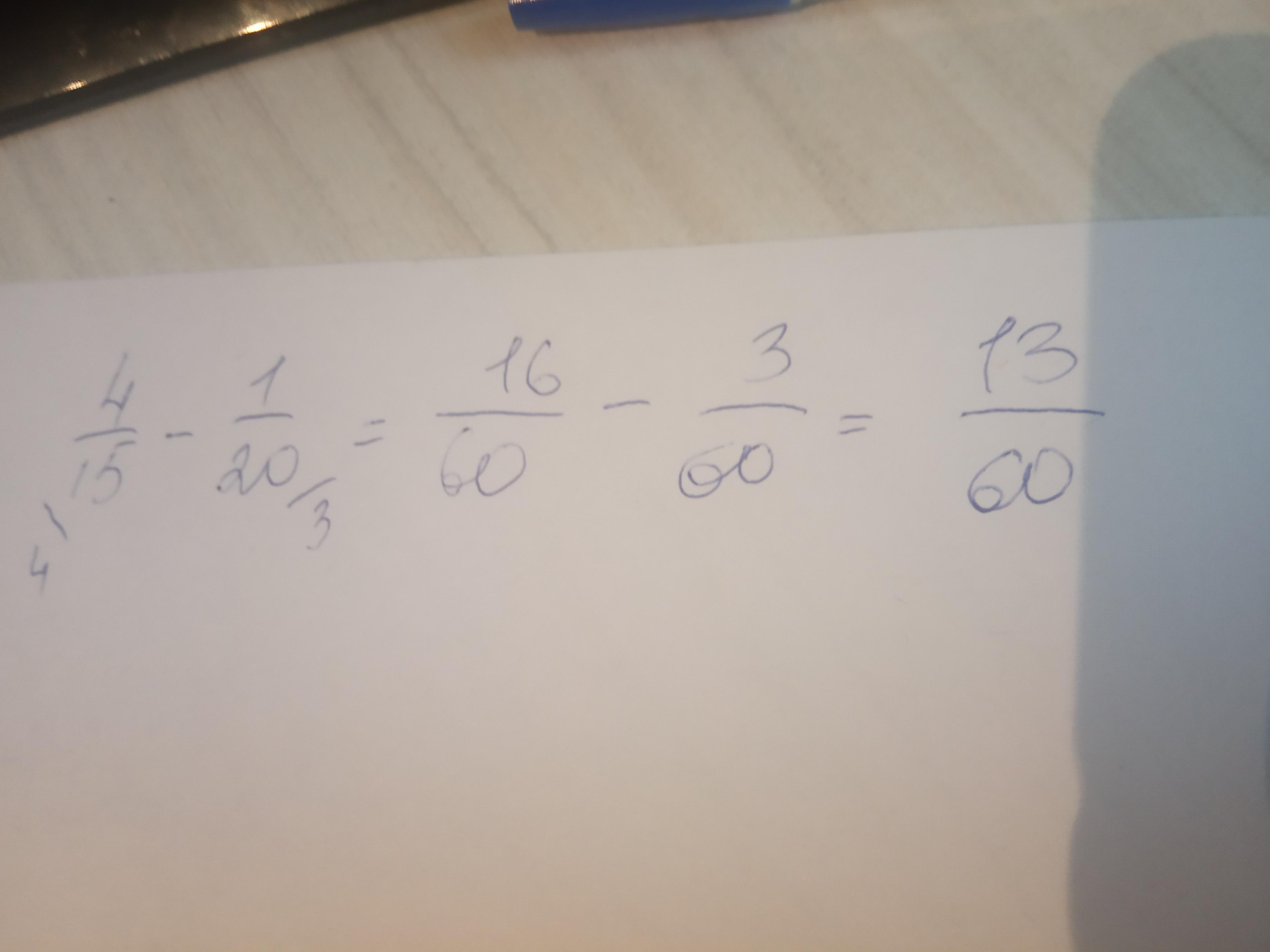 4/15 - 1/20 = 13/60
