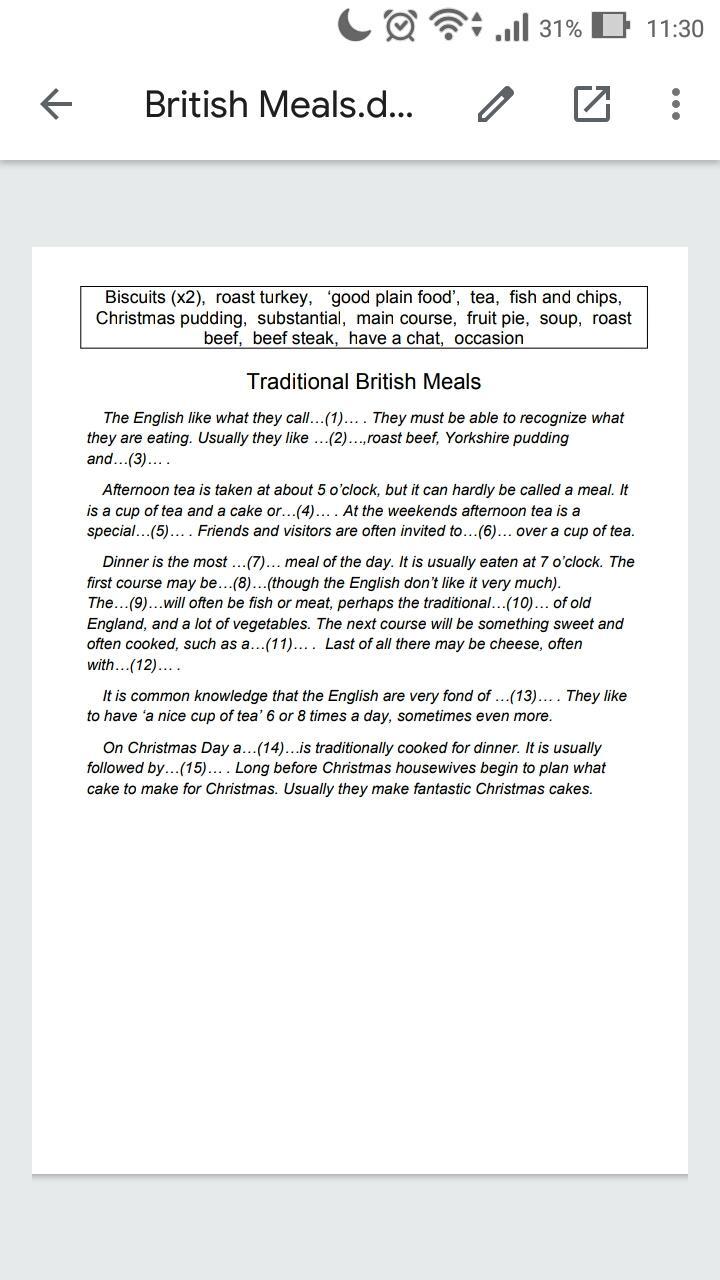 1)good plain food