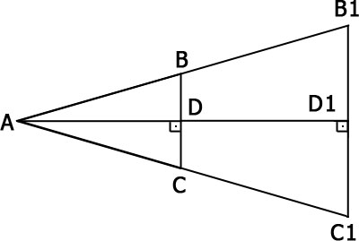 Т.к. треугольники ABC и AB1C1 равнобедренные, то высоты AD и AD1 делят стороны BC и B1C1 пополам, т.е. BD = DC = 40 см, B1D1 = D1C1 = 80 см.