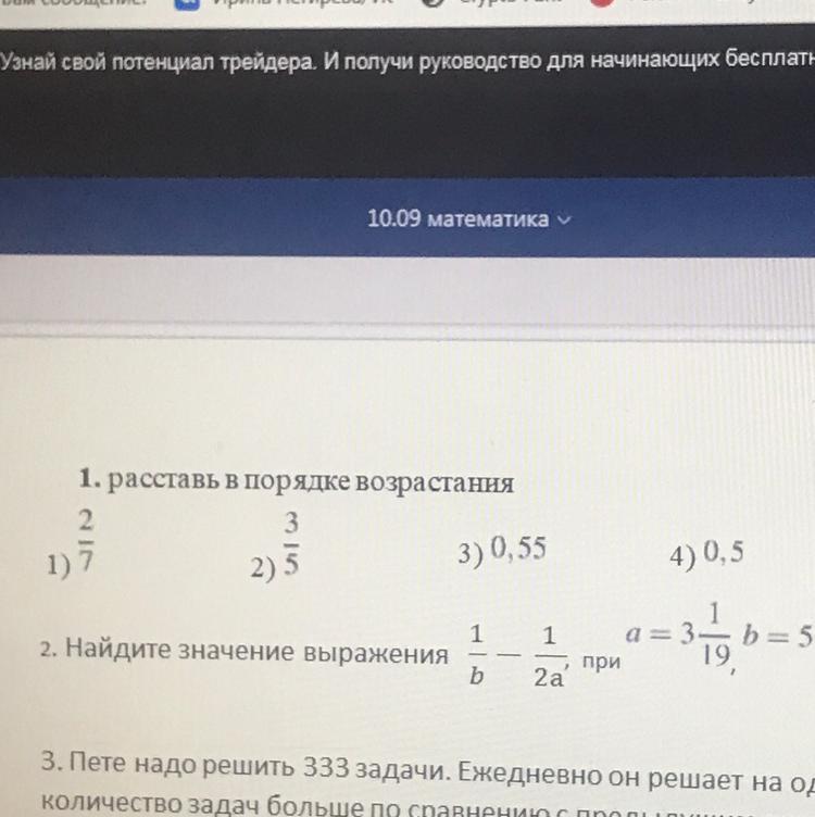 В порядке возрастания: 2/7; 0,5; 0,55; 3/5