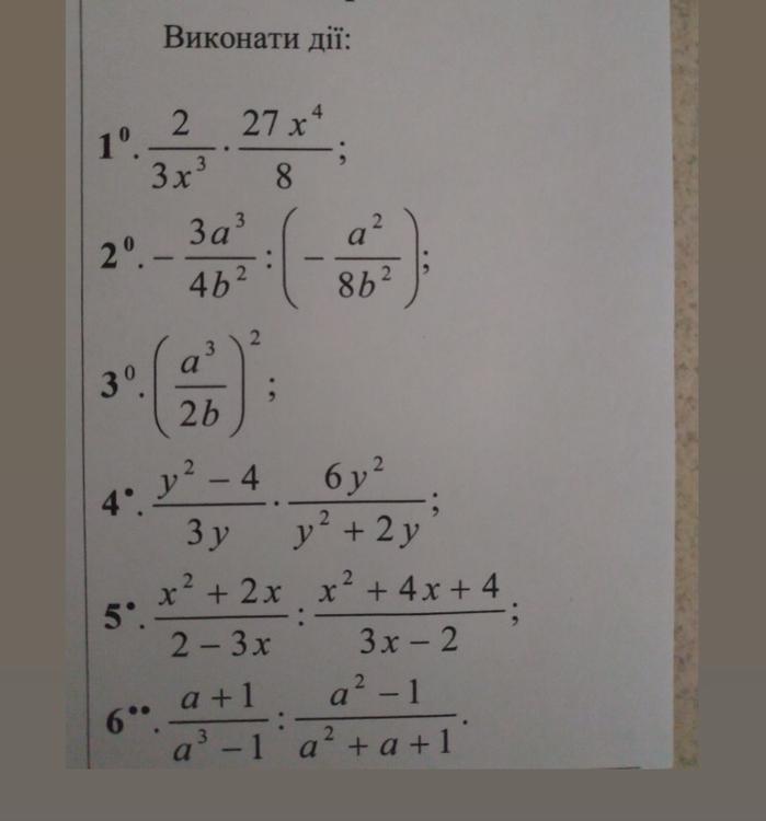 1) \frac{9x}{4} 2)6a3) \frac{a {}^{6} }{4b {}^{2} } 4)2y - 4 \:  \:  \: 5) -  \frac{x {}^{2}  + 2x}{x {}^{2}  + 16} 6) \frac{1}{(a - 1) {}^{2} }