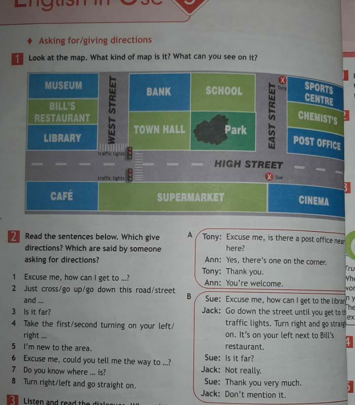 Read the sentences below. Which give directions? Which are said by someone asking? (Прочитайте предложения ниже. Определите, в которых из них указываются направления (ANSWER-объясняют дорогу, отвечают, как добраться), а в которых спрашивается о направлении (ASK-спрашивают дорогу)