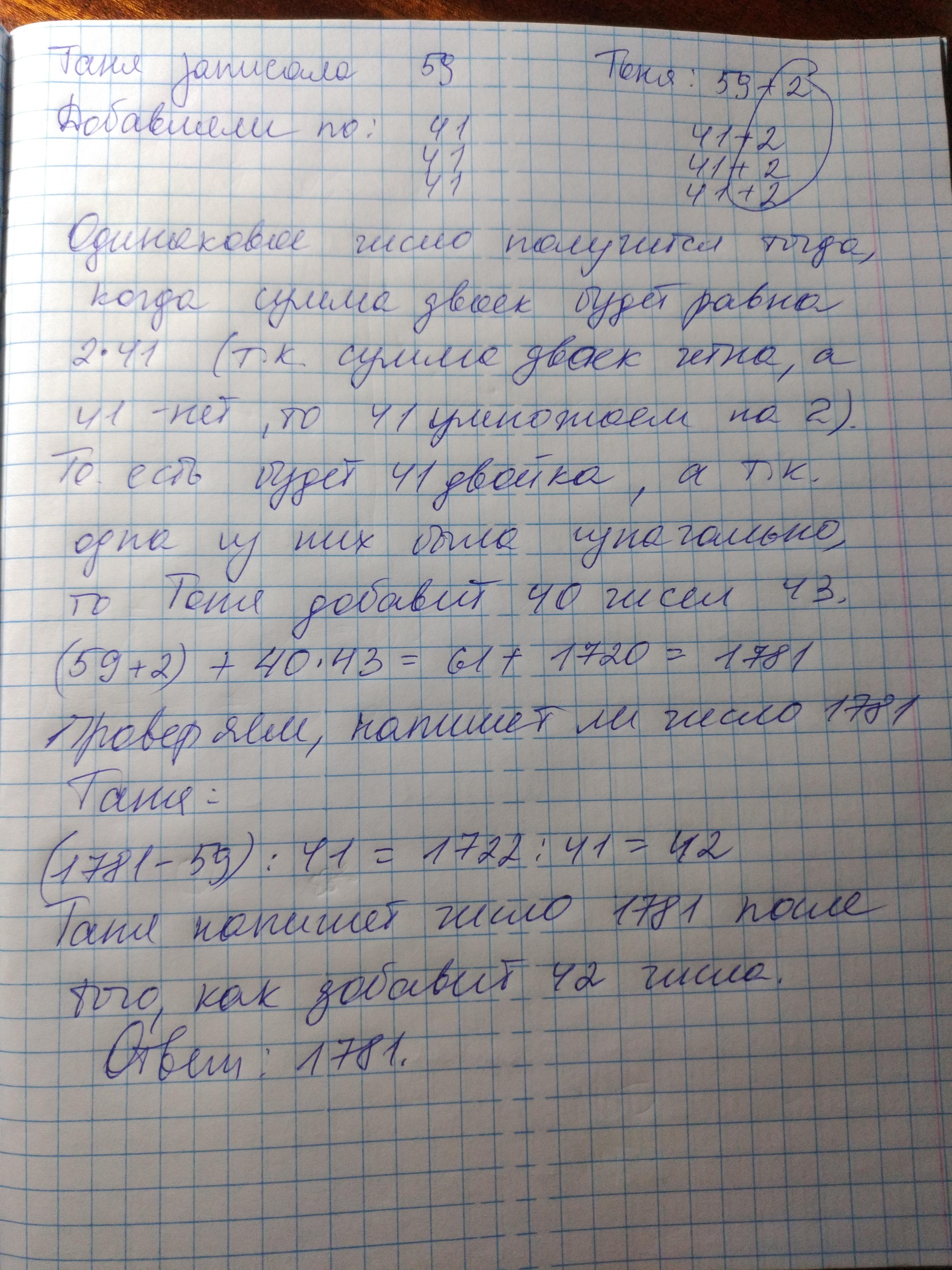 Таня написала на доске число 59, а Тоня написала 61. Таня каждую минуту увеличивает своё число на 41 и записывает результат на доску, а Тоня каждую минуту увеличивает своё число на 43 и тоже записывает результат на доску. Каким будет наименьшее число, которое на доске напишет как Таня, так и Тоня, возможно не одновременно?