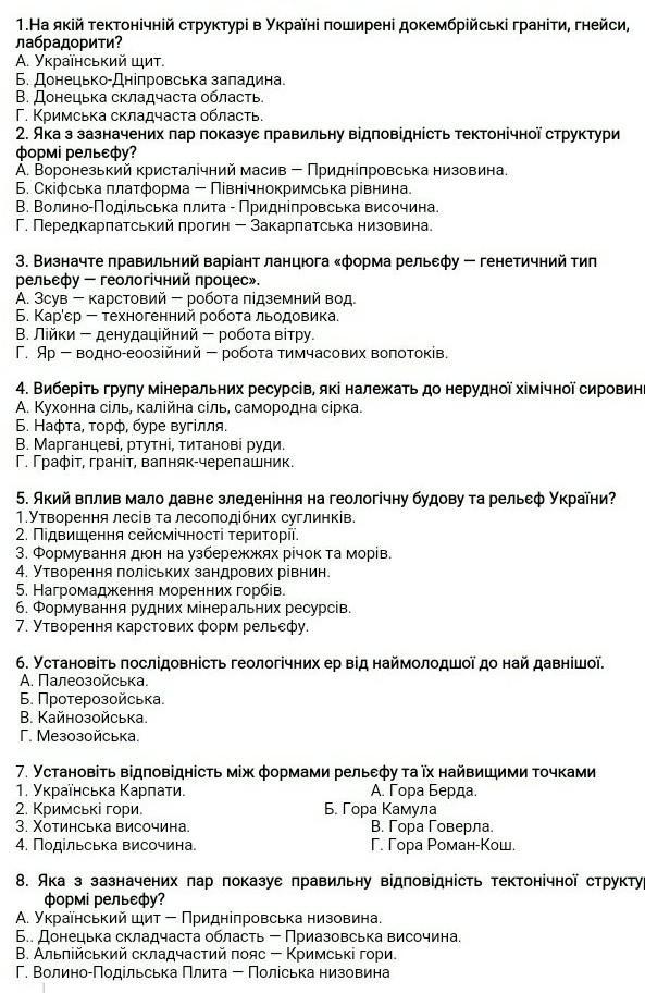 6 - Б,А,Г,В ( протерозой, палеозой, мезозой, кайназой)