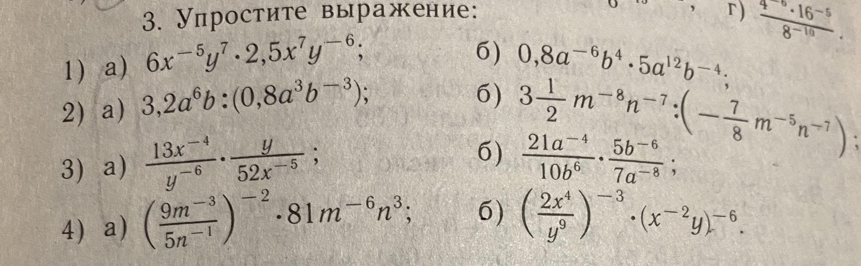 б) 21a^-4/10b^6*5b^-6/7a^-8=3a^-4/10b^6*5b^-6=3a^4/2b^12