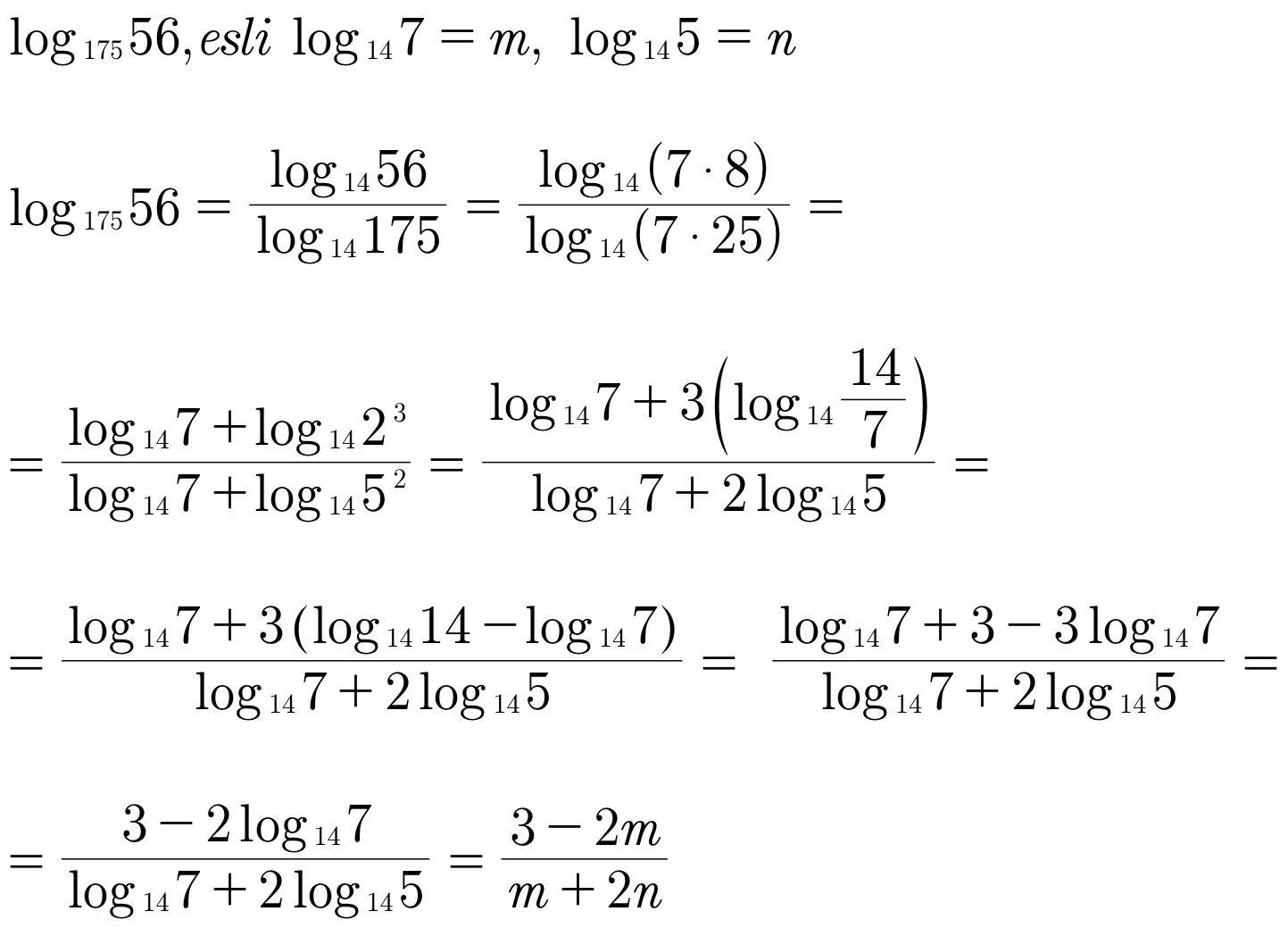 log₁₄ 7 = m найдем log₁₇₅ 56 - ?