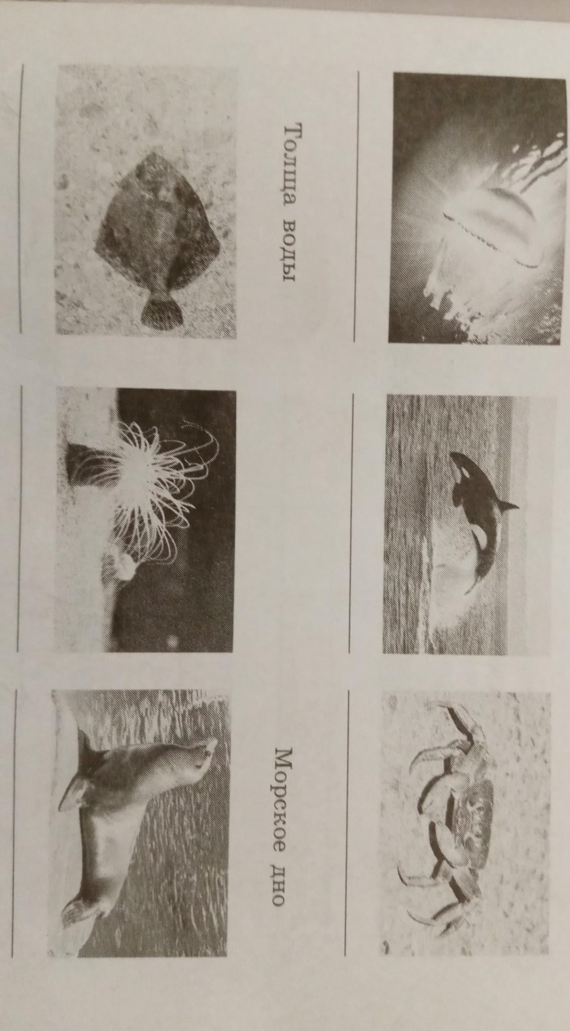 Ответ:дельфин , тюлень , рыба относятся к толще воды. А медуза , морское растение , краб к морскому дну