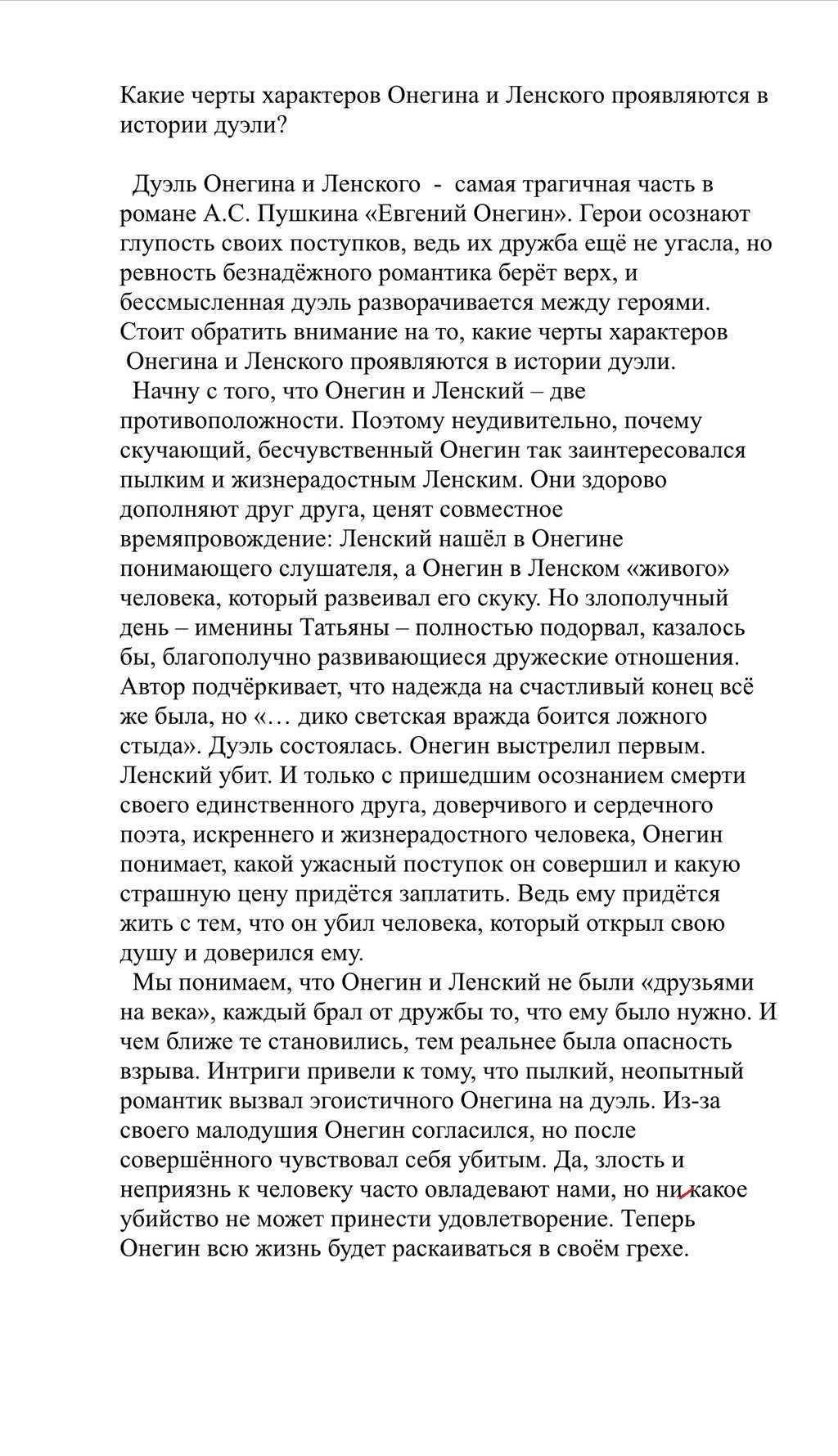 Напишите сочинение на тему "Какие черты характеров Онегина и Ленского проявляются в истории дуэли".