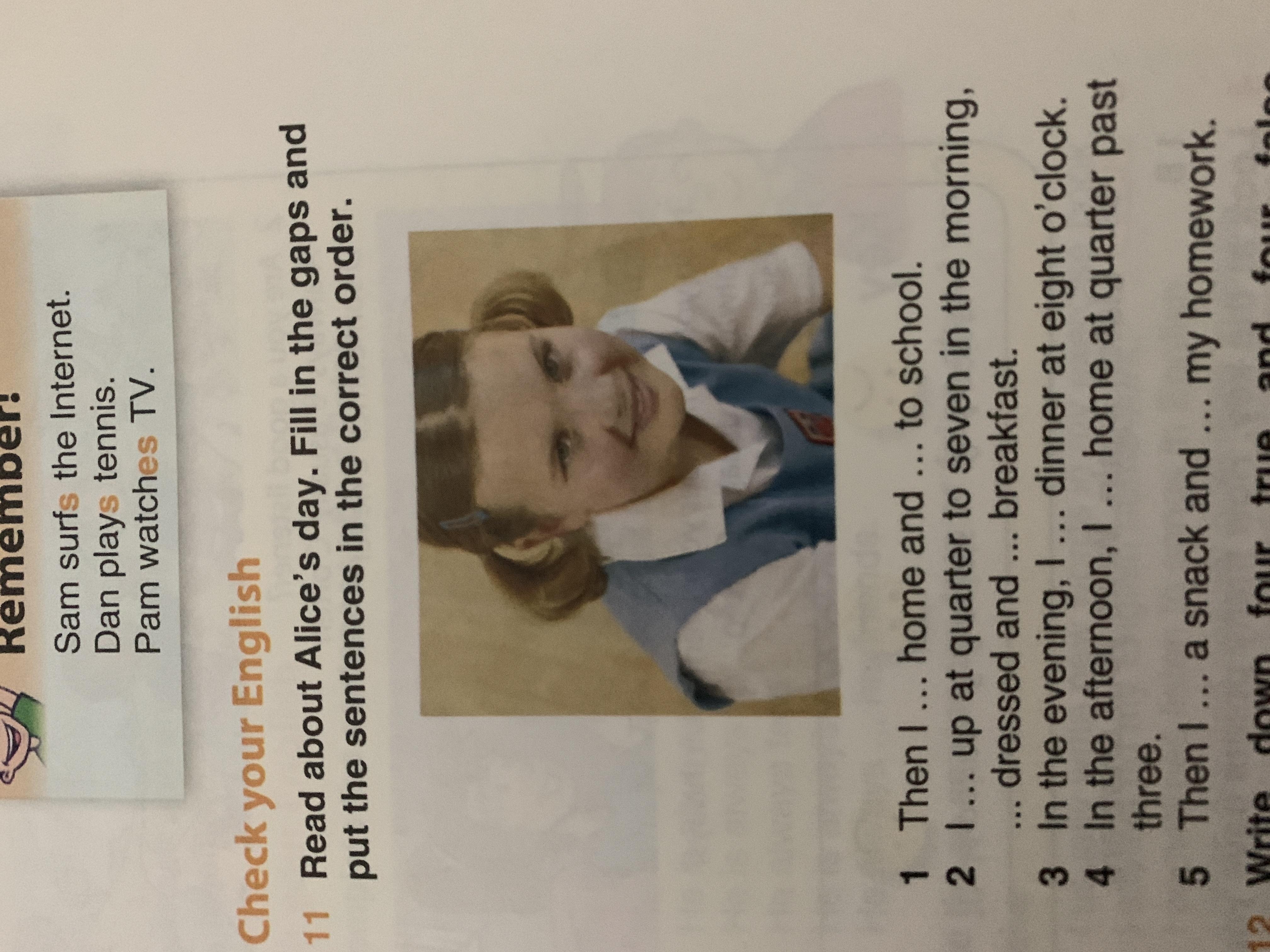 Ответ:i come.go to school. I get up.get dressed .have breakfast.i have.i back. I have .do my homework.