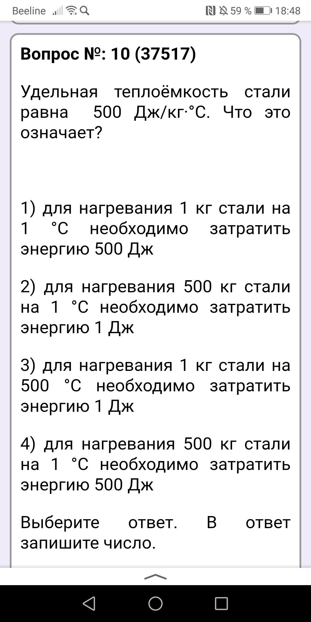 4) для нагревания 500 кг стали на 1 С необходимо затратить энергию 500 Дж
