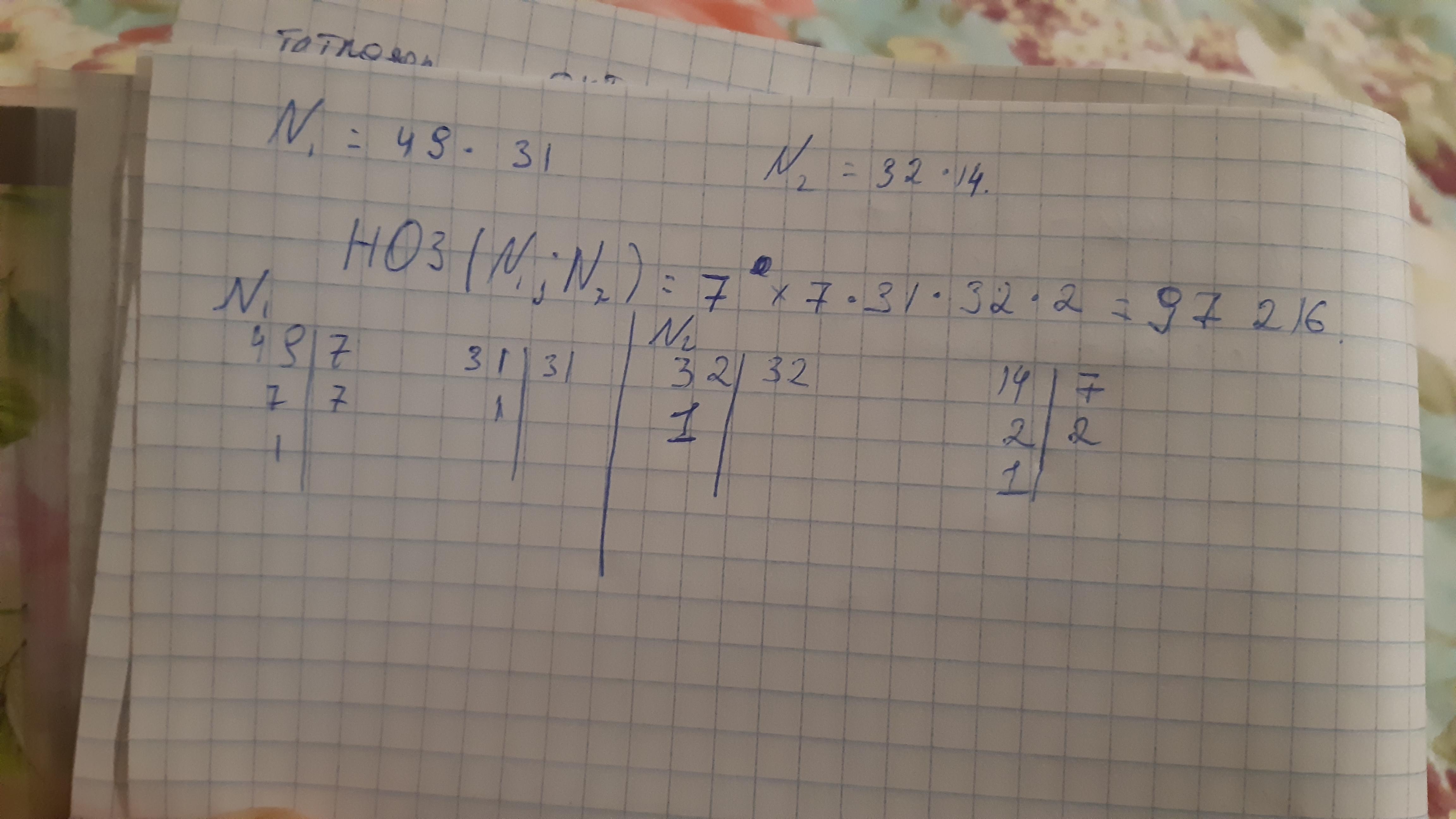 НОЗ(N1;N2)= 7×7×31×2=97216