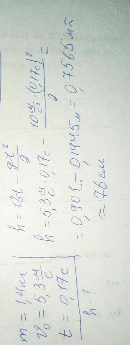 Определи высоту, на которой окажется тело через 0,17 с после броска.