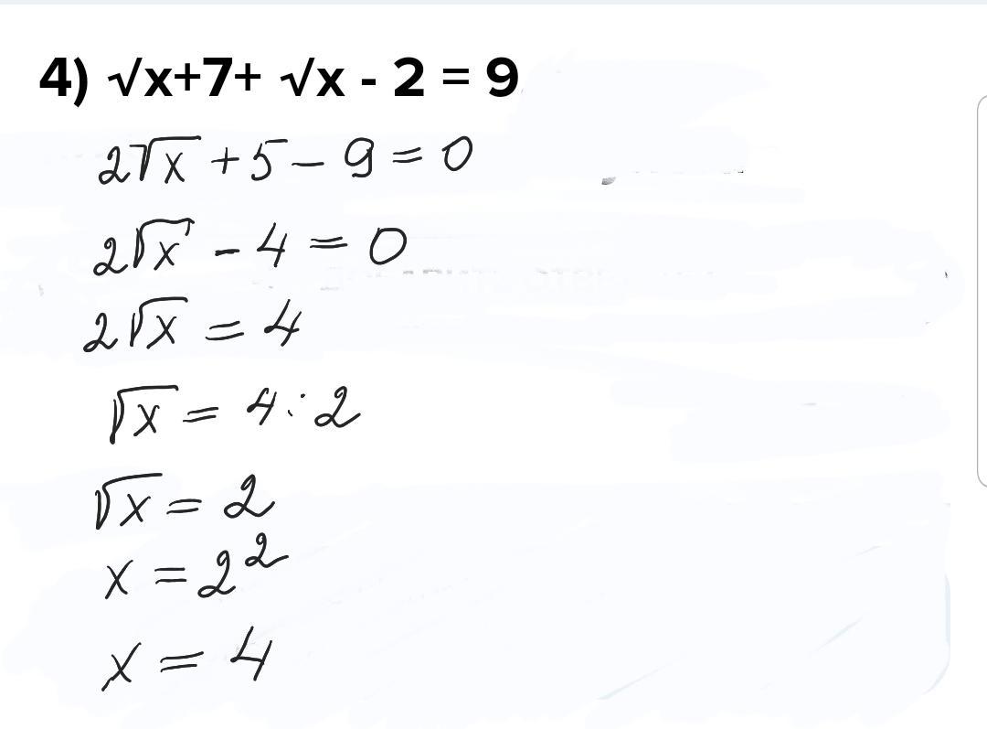 Пожалуйста! Но если х= 18,то корень из 18 = 4,2426406871,округляем до целого числа 4 и подставляем в уравнение :4+7+4-2= 13 ,а в ответе должно быть 9.