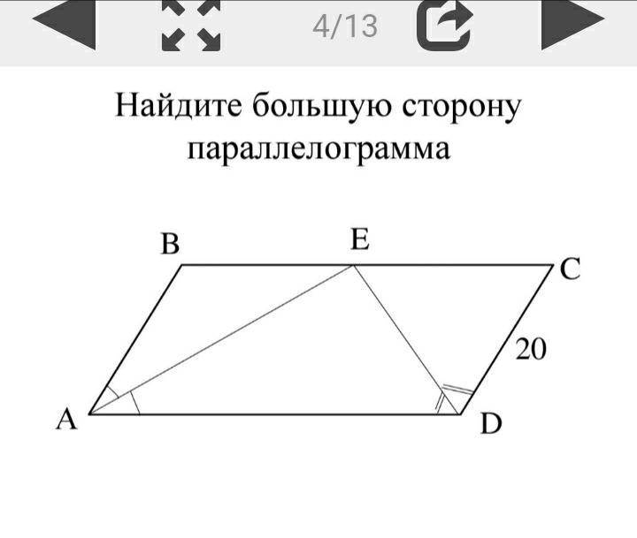 ∠ВАЕ=∠ЕАD; ∠BEA=∠EAD как внутренние накрест лежащие при ВС║АD и секущей АЕ, ∠ВЕА=∠ВАЕ, ΔАВЕ - равнобедренный, ВЕ=АВ=СD=20