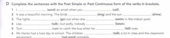 D Complete the sentences with the Past Simple or Past Continuous form of the verbs in brackets.