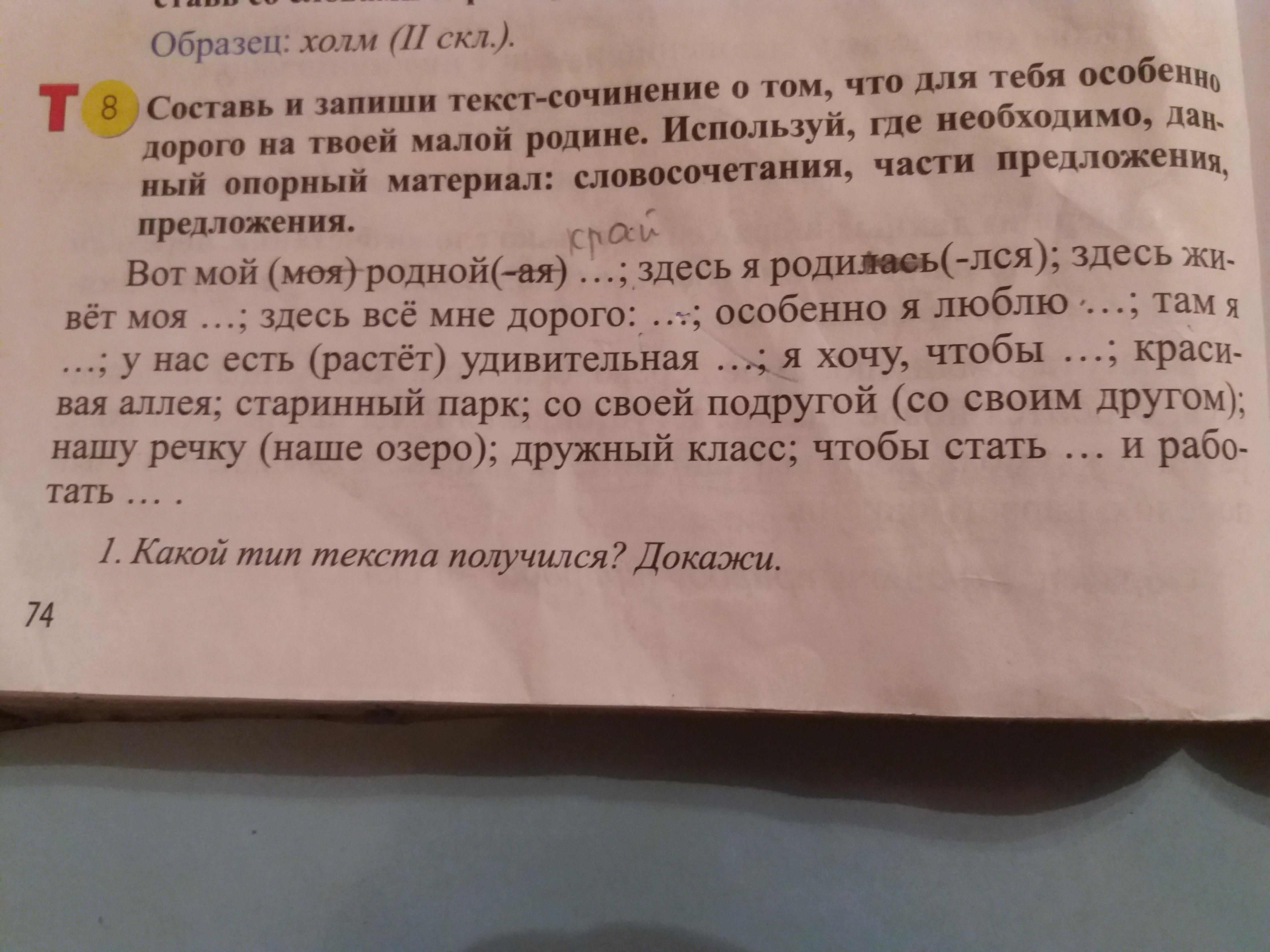Ты чего там же все про тебя Вот мой РОДНОЙ край .здесь я родился .здесь живет моя родня .здесь мне все дорого:дом сад озеро.особенно я люблю озеро.там я купаюсь. и т.д