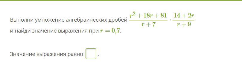 ((r+9)²)/(r+7) * (2(7+r))/(r+9) = 2r + 18 = 2(r + 9 ) = 2(0.7+9) = 2*9.7 = 19.4