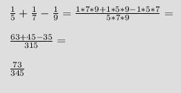1/5+1/7-1/9 = (63 + 45 - 35)/315 = 73/315