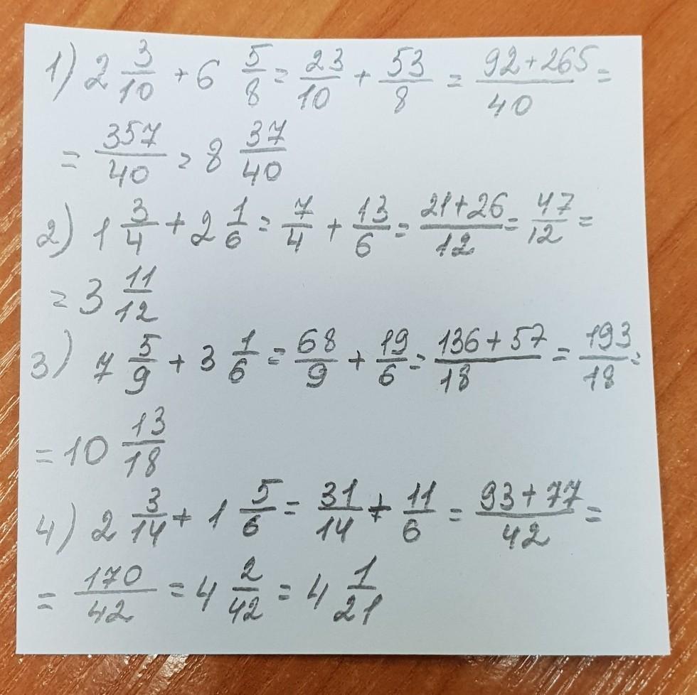 2 3/10 + 6 5/8 = 2 12/40 + 6 25/40 = 8 37/40