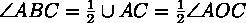 Теорема о вписанном угле: Вписанный угол равен половине центрального угла, опирающегося на ту же дугу, и дополняет до 180° половину центрального угла, опирающегося на дополнительную дугу. В любом случае вписанный угол равен половине угловой меры дуги, на которую он опирается.
