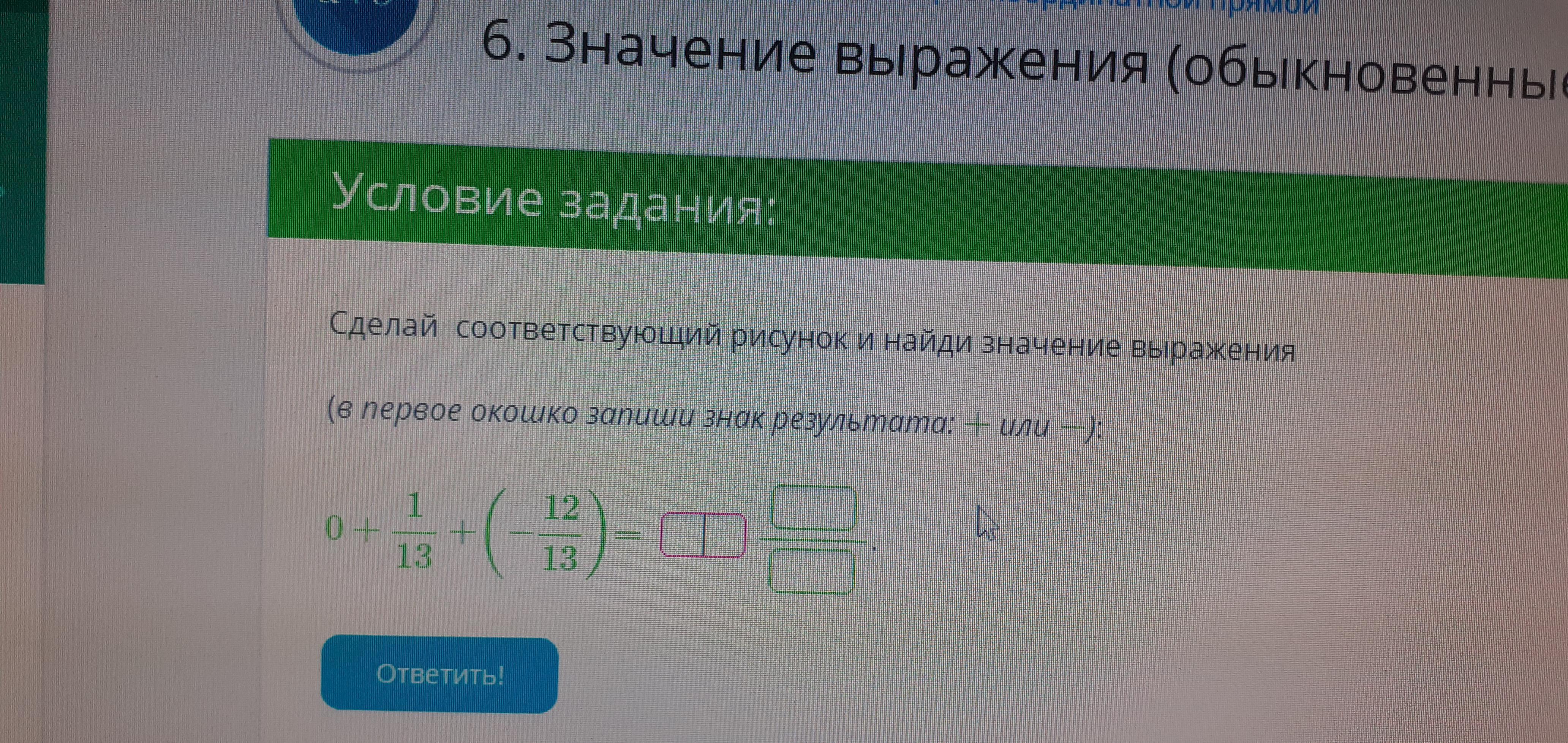 0+1/13+(-12/13)=1/13 + (-12/13) = 1/13 - 12/13 = 1-12/13 = - 11/13