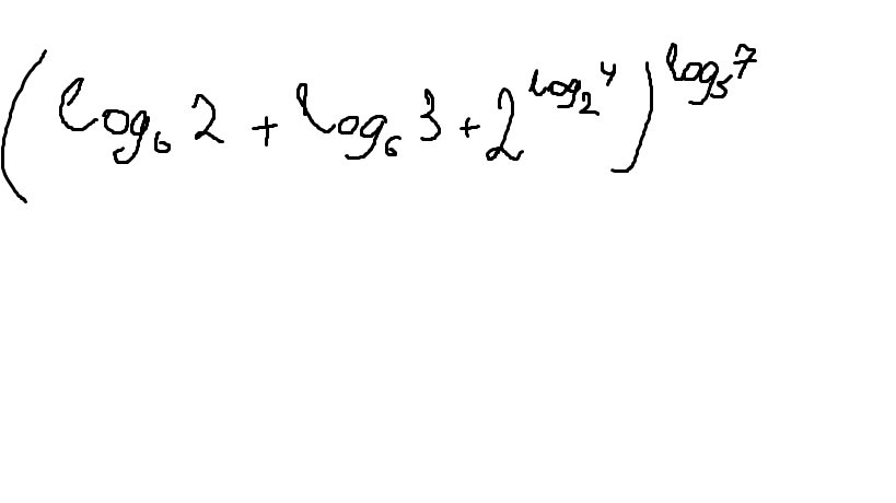 (log6(2) +log6(3) + (2^log2(4)))^log5(7) =