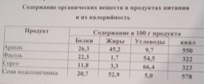 2. Используя данные таблицы «Содержание органических веществ в продуктах