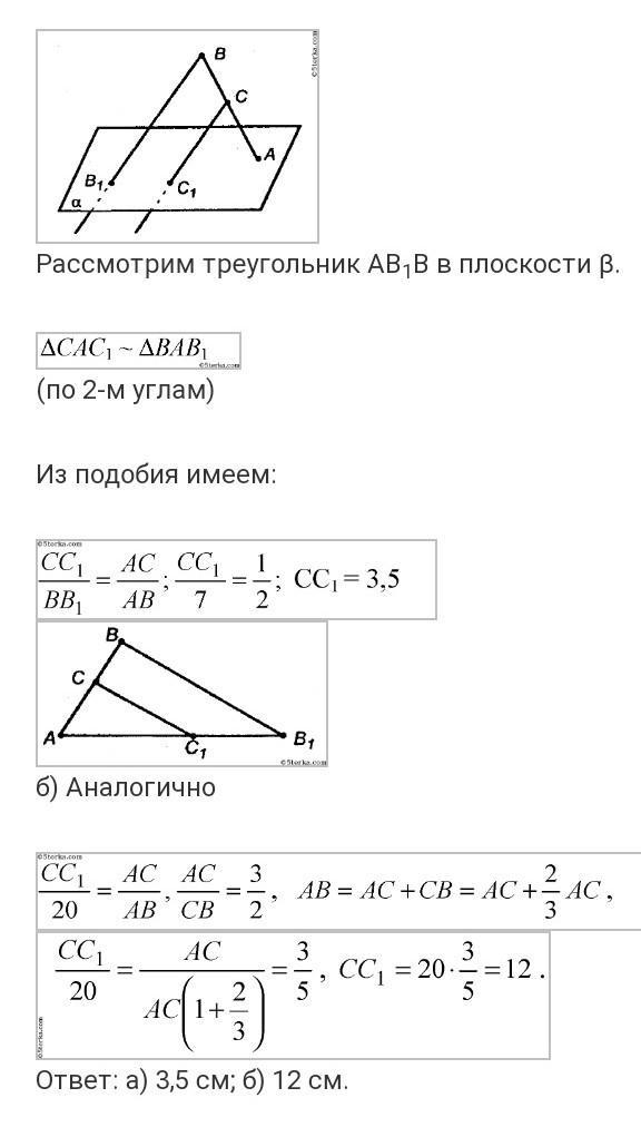 Точка С лежит на отрезке AB. Через точку А проведена плоскость, к через точки С и В - параллельные прямыее, пересекающие эту плоскость соответственно в точках B1 и C1. Найдите угол между прямой А и CD, если один из углов параллелограмма равен 145°
